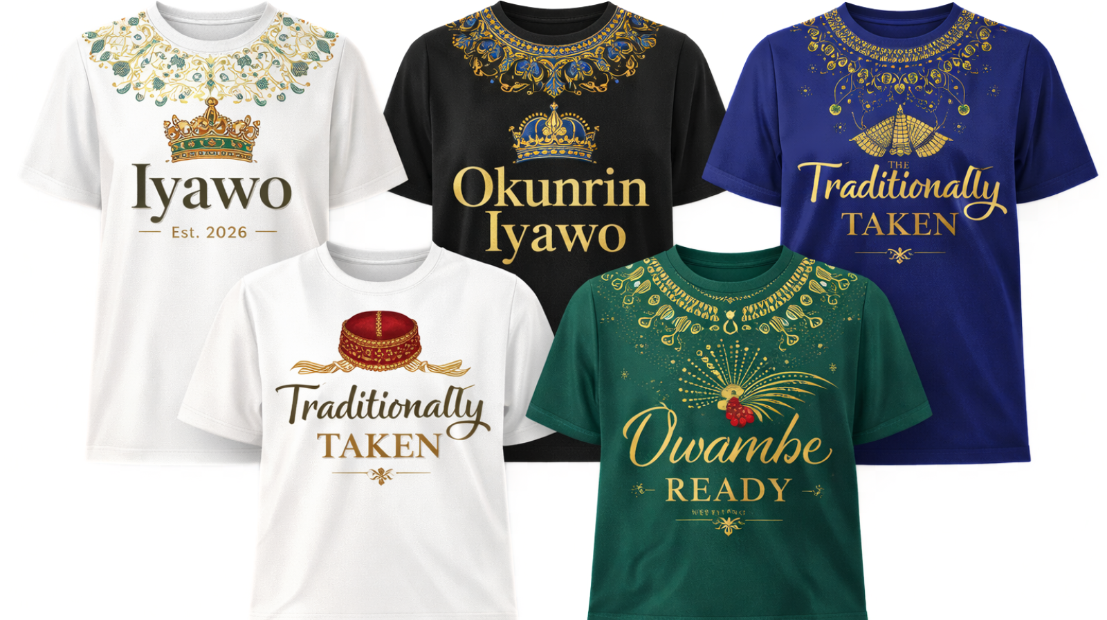 | Fully customized Aso-ebi-inspired patterns, beadwork, crowns, and cultural motifs |