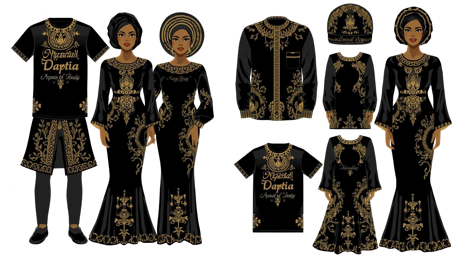 - Agbada, Dashiki, Bubu, and modern luxury styles